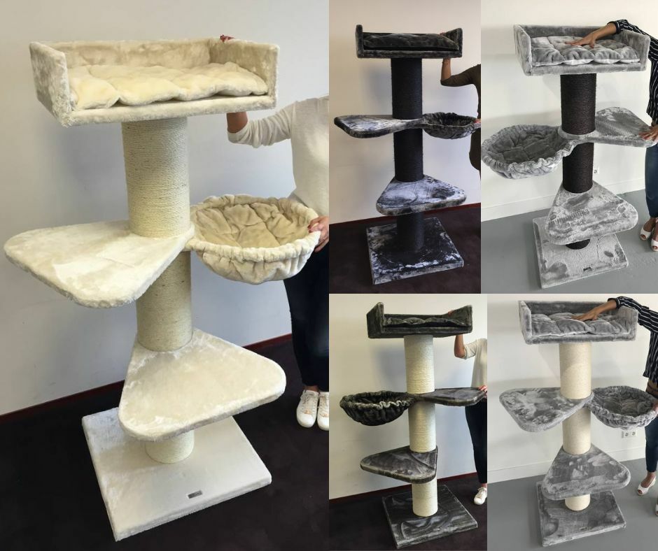 Här har katten flera stora sovhyllor och flera liggkorgar. En härlig klösmöbel för både kattungar och vuxna katter.